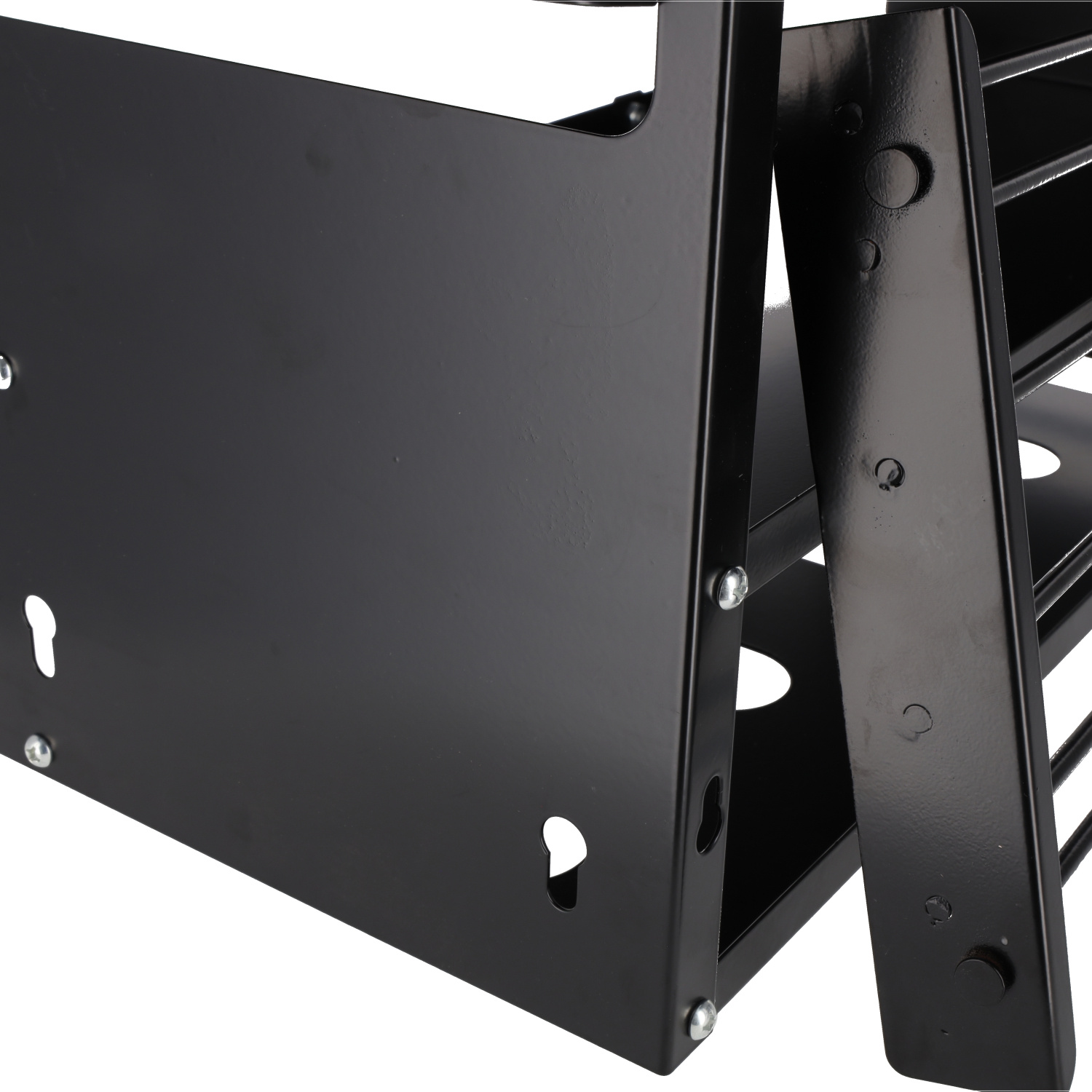 Wall-mounted shelf for cordless power tools is a practical and durable workshop holder designed for storing power tools such as drills, drivers, grinders, impact wrenches, and their accessories. Equipped with built-in mounts, shelves, and compartments, it allows convenient organization of tools and helps maintain order in a workshop, garage, or technical room.