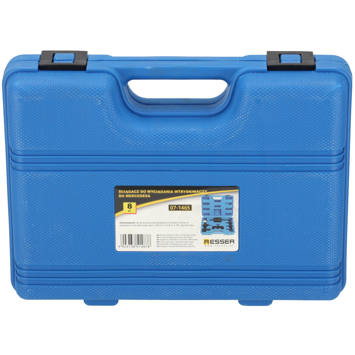 Resser brand products are known for their durability, precision workmanship, and reliability. The set is designed for intensive workshop use and enables safe injector removal without the risk of damaging the cylinder head.