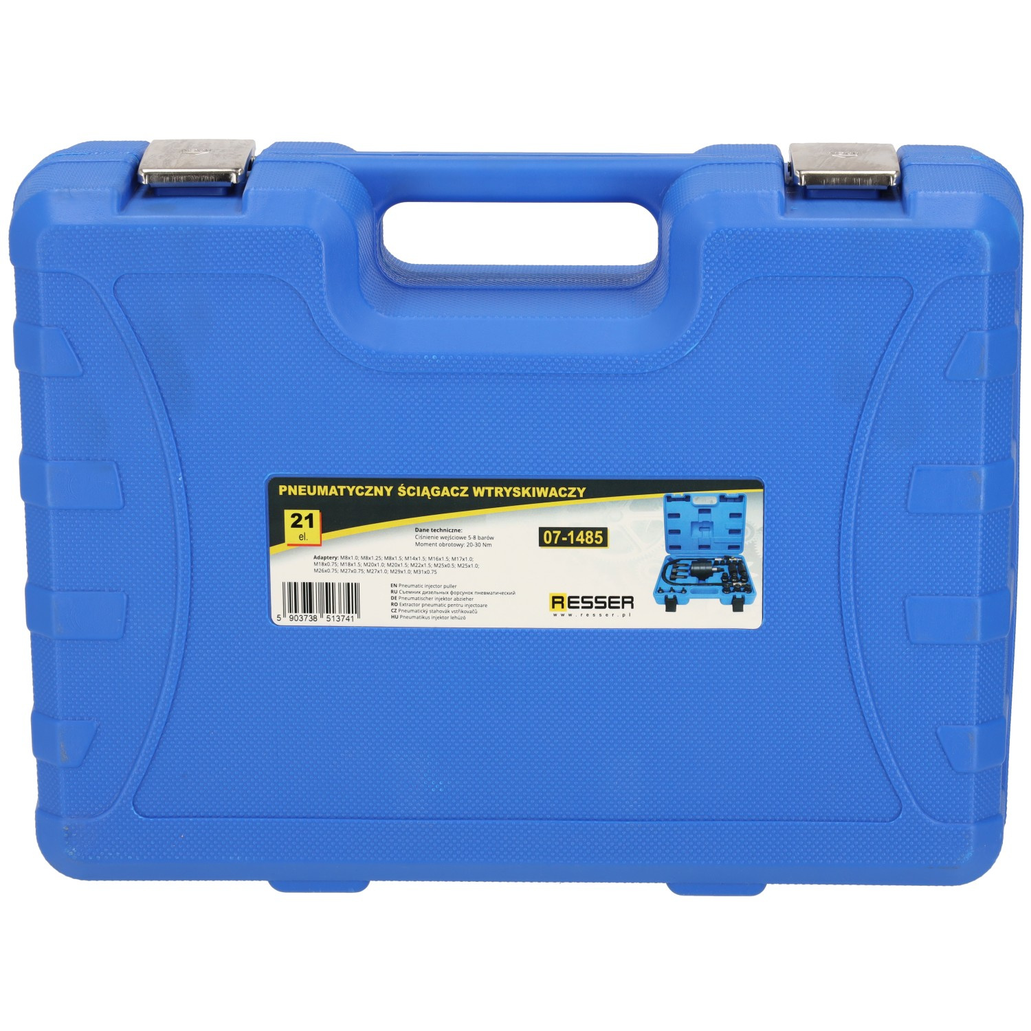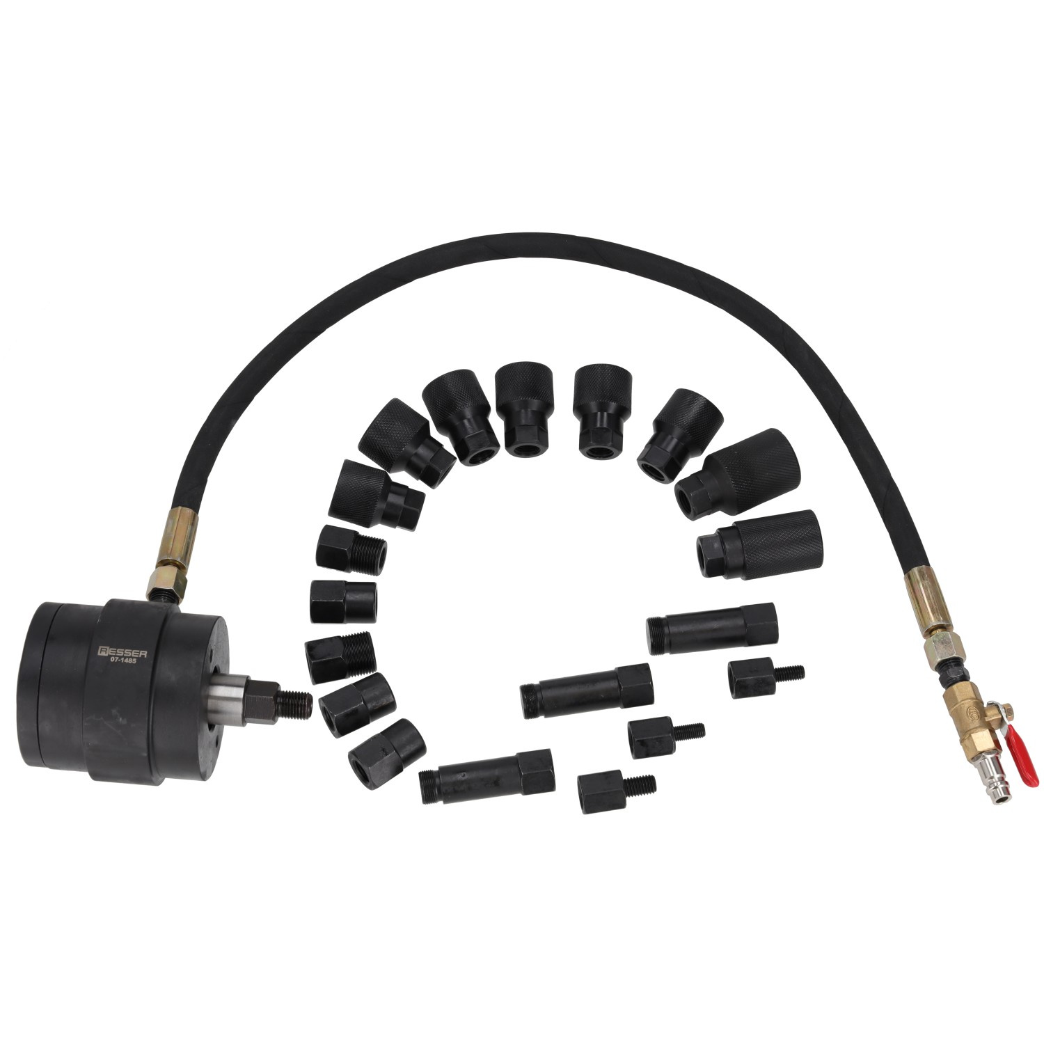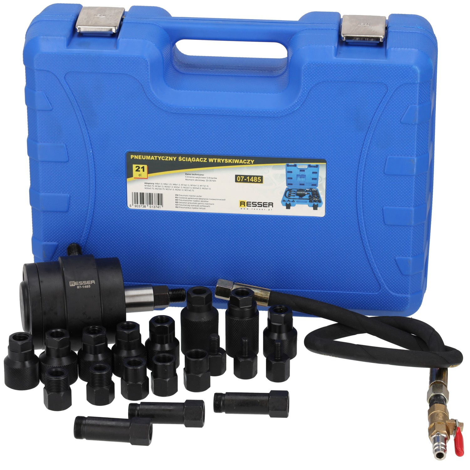 Pneumatic injector puller with adapters, 21-piece set, Resser