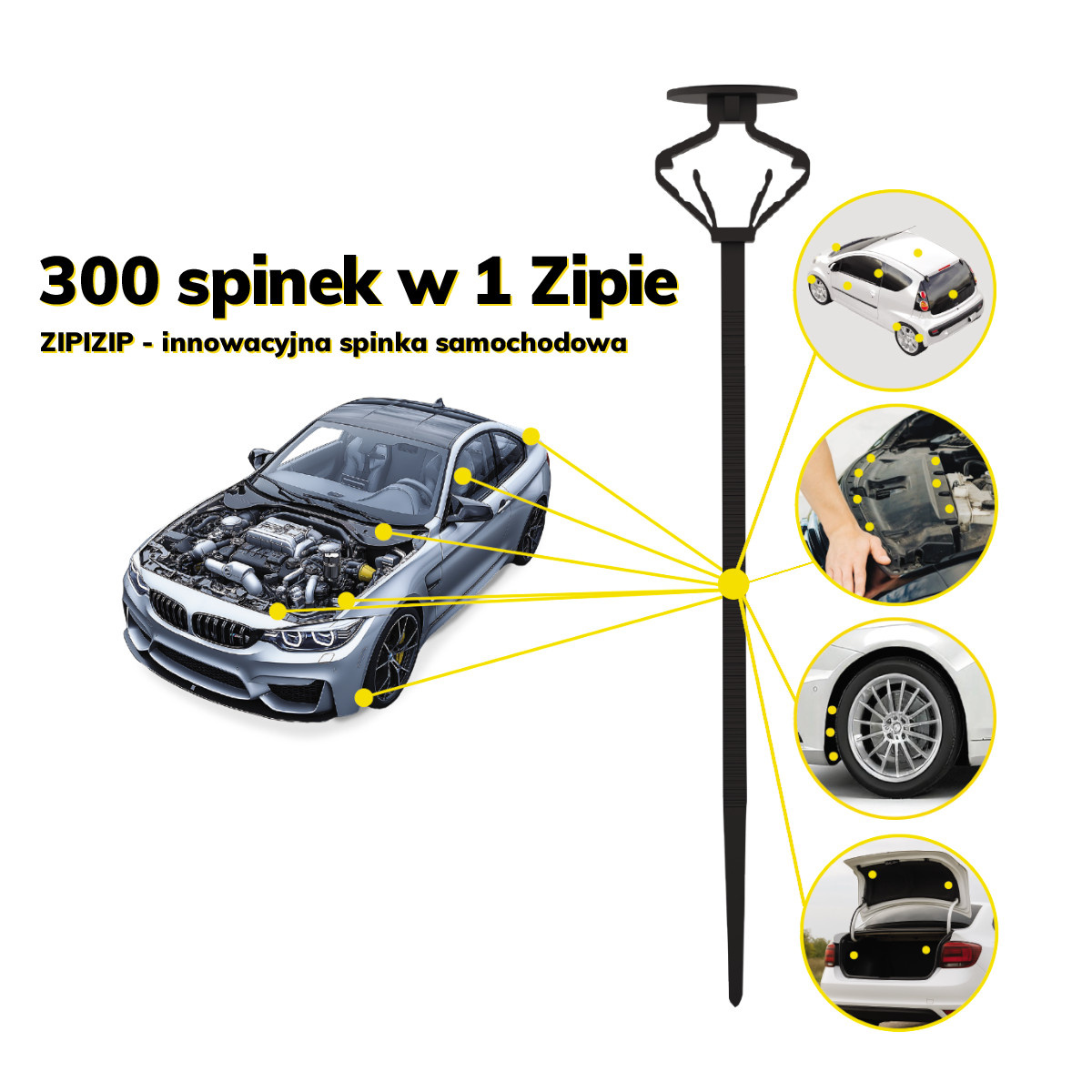 ZipiZip – opatentowana uniwersalna spinka samochodowa, która zastępuje aż 300 różnych typów spinek, kołków i opasek zaciskowych. Dzięki inteligentnej konstrukcji i systemowi docisku zapewnia trwałe, precyzyjne i bezluzowe połączenia w nadkolach, osłonach silnika, tapicerce, bagażniku i wielu innych elementach samochodowych. To rozwiązanie stworzone dla warsztatów, serwisów, sprzedawców części oraz kierowców ceniących jakość, prostotę i wszechstronność.