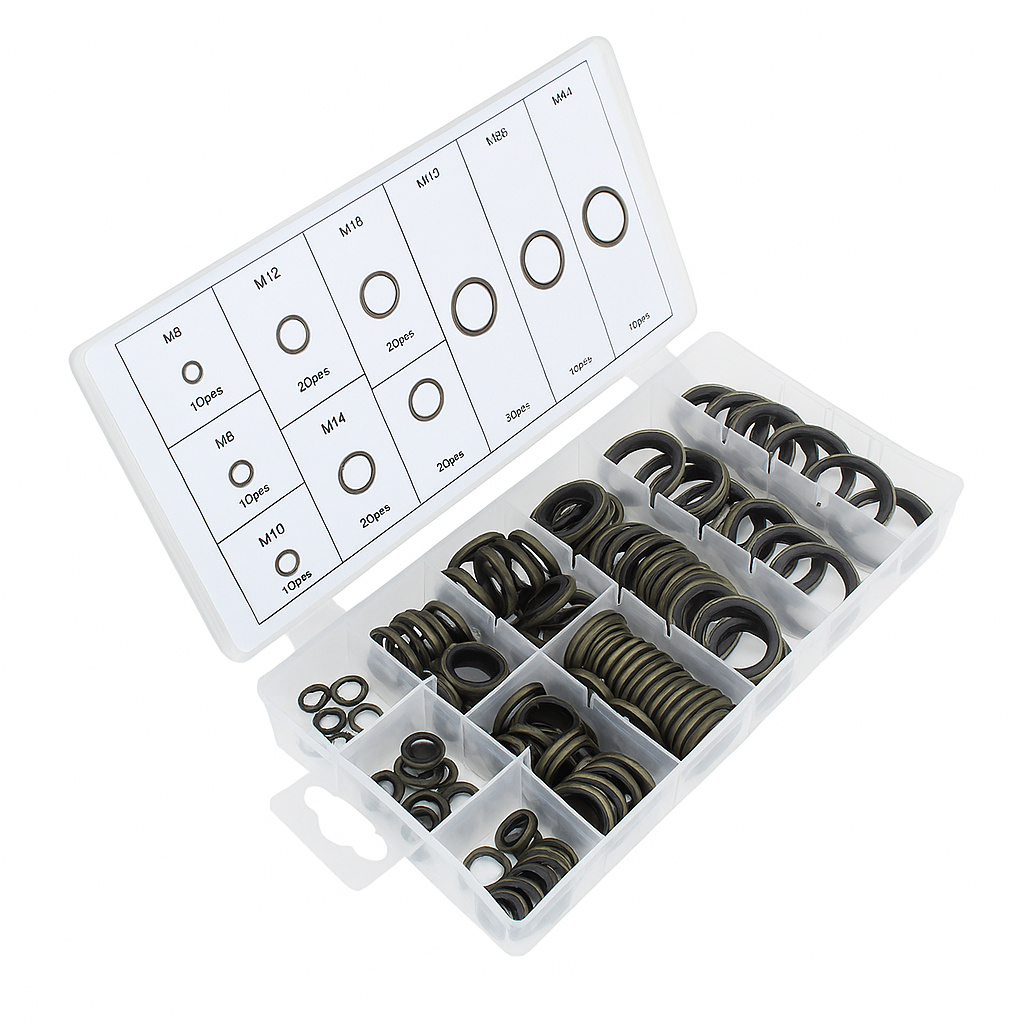 Zestaw podkładek metalowo-gumowych M6–M24 to kompletny pakiet uszczelnień do zastosowań hydraulicznych, pneumatycznych i motoryzacyjnych. Podkładki wykonane są z wysokiej jakości stali oraz gumy NBR, co zapewnia im doskonałą szczelność i odporność na czynniki zewnętrzne.