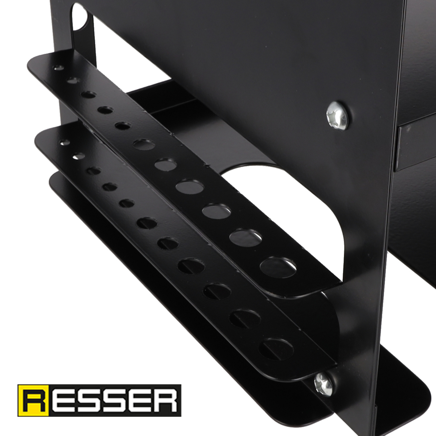 Półka wisząca na narzędzia akumulatorowe to praktyczny i solidny wieszak warsztatowy przeznaczony do przechowywania elektronarzędzi takich jak wiertarki, wkrętarki, szlifierki oraz zakrętarki. Wyposażona w uchwyty, półki i przegrody umożliwia wygodne rozmieszczenie narzędzi oraz akcesoriów, zapewniając porządek i szybki dostęp do wyposażenia w warsztacie, garażu lub pomieszczeniu technicznym.