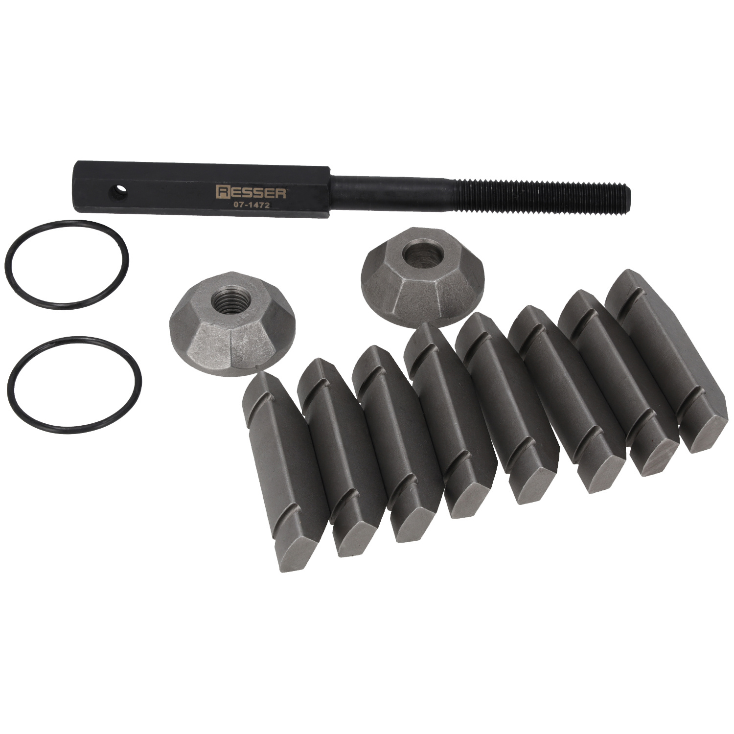 Produkty marki Resser charakteryzują się trwałością, precyzją wykonania i niezawodnością. Zestaw rozpieraków został zaprojektowany z myślą o intensywnym użytkowaniu warsztatowym — hartowana stal, szeroki zakres pracy oraz wysoka odporność na odkształcenia gwarantują skuteczną i bezpieczną regenerację oraz dopasowanie rur wydechowych.