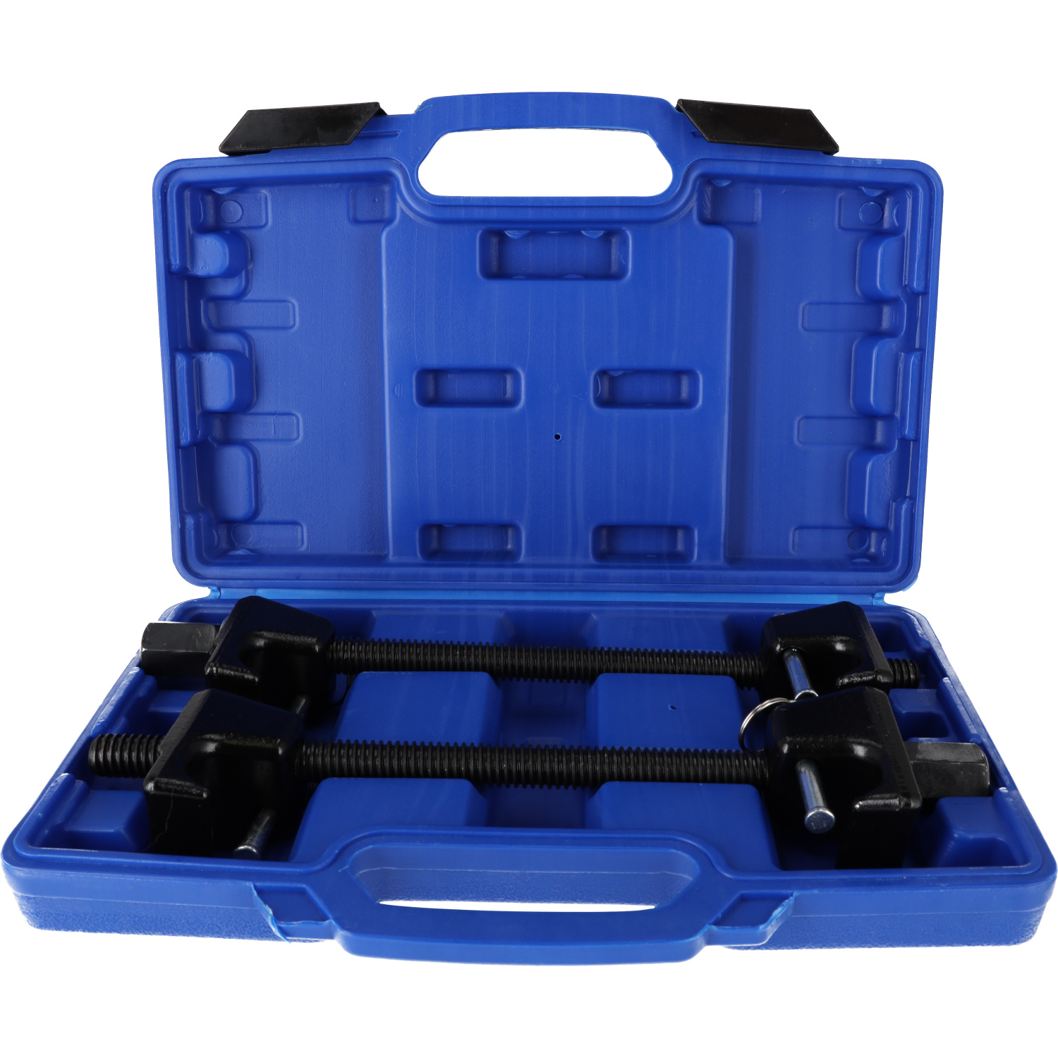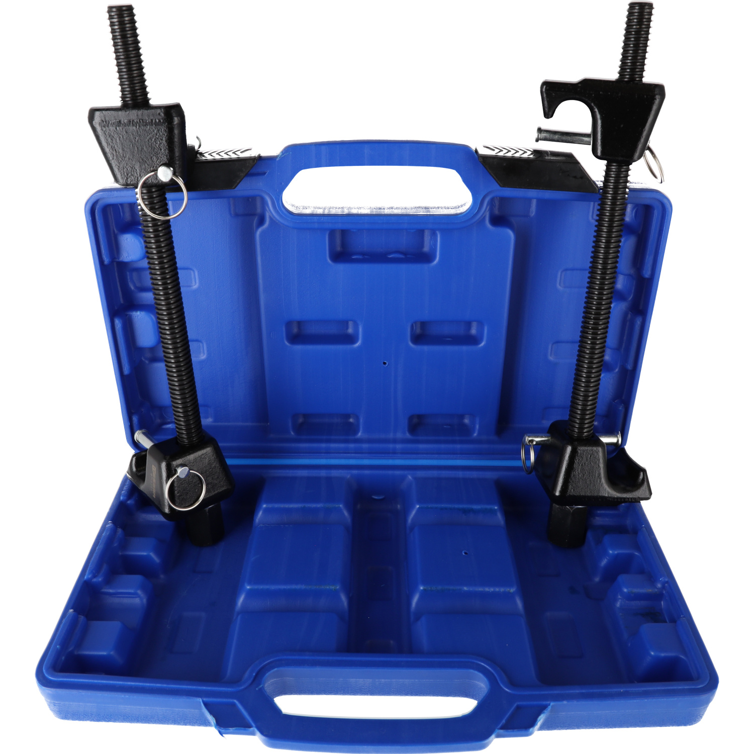 Ściągacz do sprężyn McPherson 260 mm z zabezpieczeniem to profesjonalne narzędzie warsztatowe przeznaczone do bezpiecznego montażu i demontażu sprężyn zawieszenia w kolumnach typu McPherson. Narzędzie umożliwia kontrolowaną pracę podczas wymiany amortyzatorów i sprężyn w samochodach osobowych.