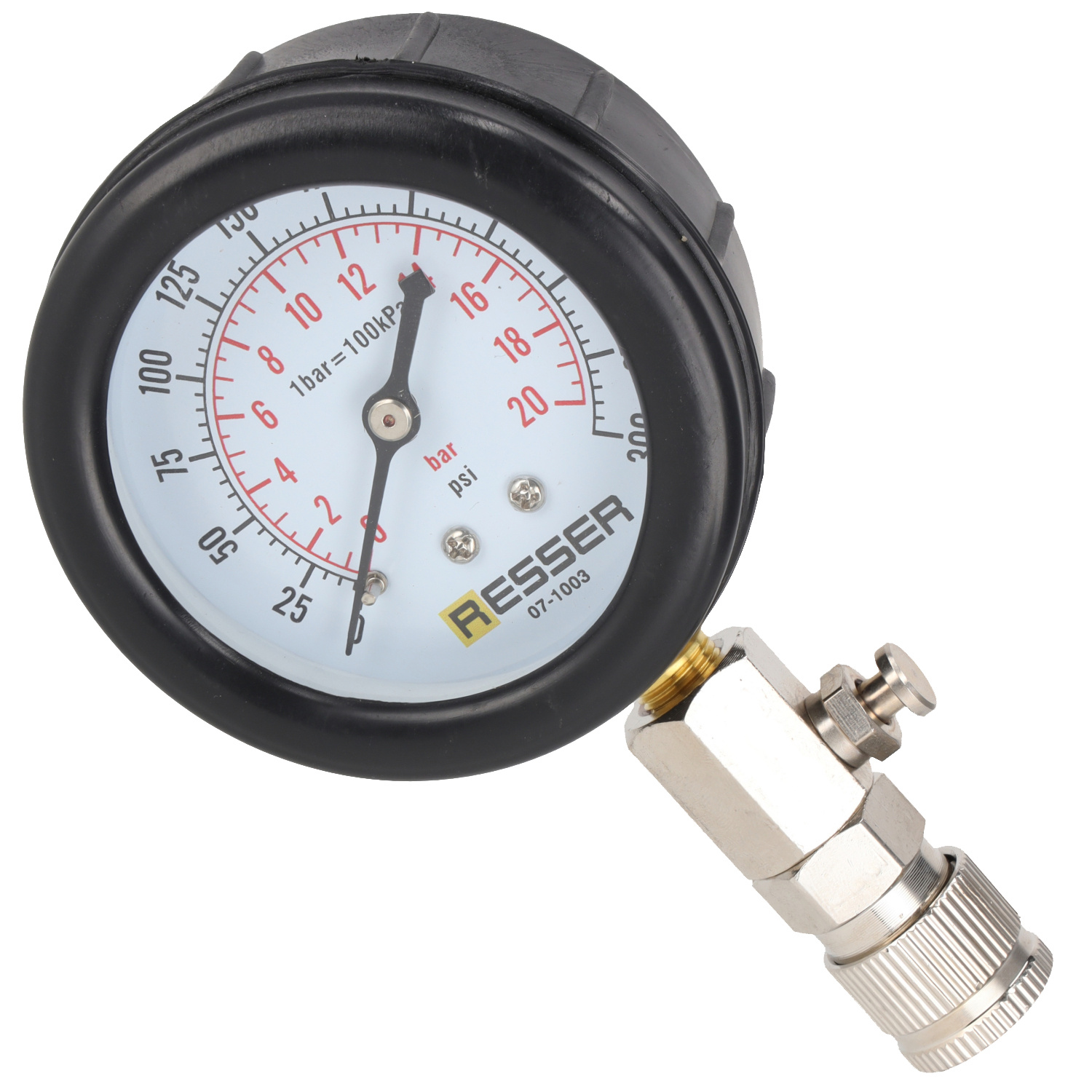Produkty marki Resser charakteryzują się trwałością, precyzją wykonania i niezawodnością. Miernik został zaprojektowany z myślą o intensywnym użytkowaniu warsztatowym – solidna konstrukcja, dokładny manometr oraz bogaty zestaw adapterów zapewniają precyzyjne pomiary i wysoką odporność na eksploatację.