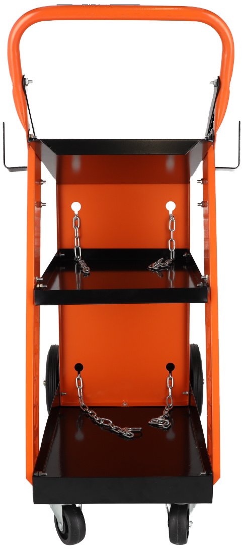 Wózek spawalniczy 60 kg 07-1095 to solidna i funkcjonalna konstrukcja przeznaczona do transportu spawarek, butli gazowych oraz osprzętu spawalniczego. Wykonany z lakierowanej stali, wyposażony w trzy półki robocze, uchwyty na przewody oraz mocowanie butli, zapewnia porządek i wygodę pracy w warunkach warsztatowych.